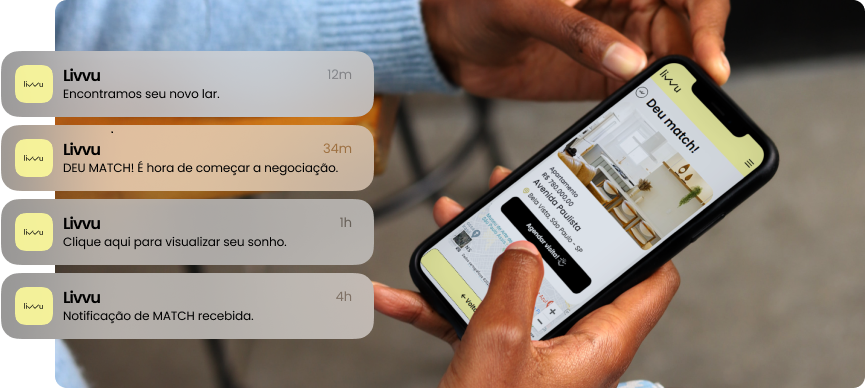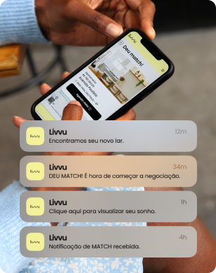 A diferença perante ao mercado é que além da mágica do match, na livvu você ganha toda assessoria jurídica, certidões, mudança, projeto 3d e assessoria para financiamento...